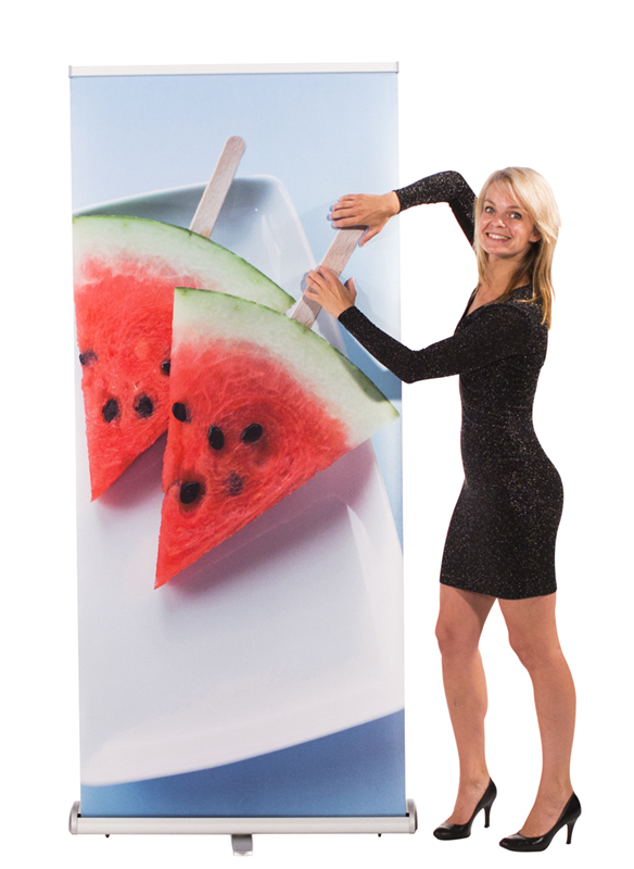 De roll-up banner is een onmisbaar element op beurzen en expo's. Wij verzekeren de beste kwaliteit van roll-up banners, steeds door ons inhouse geprint met milieuvriendelijke inkten.