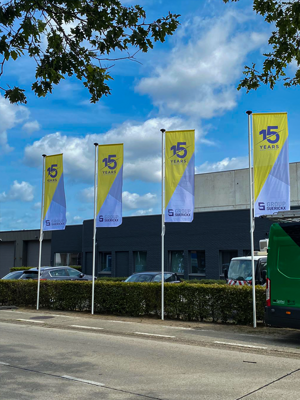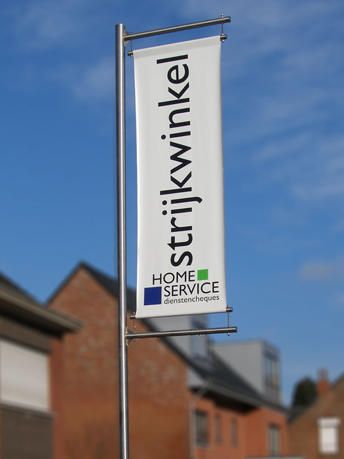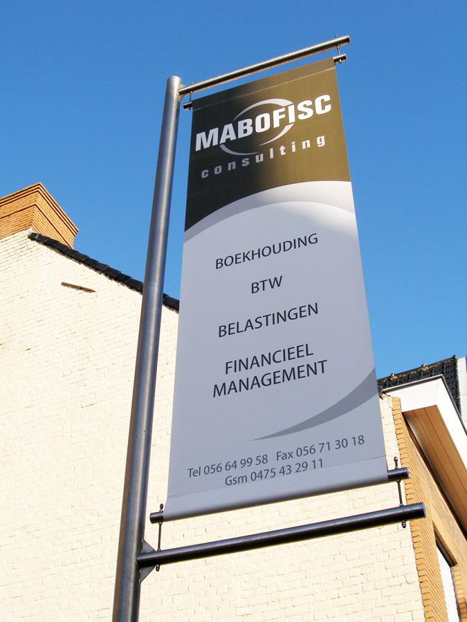 Banieren voor haakse gevelmontage en/of vlakke montage zodus wapperende vlaggen of strakke banieren, bij OptiCom vindt u het allemaal!